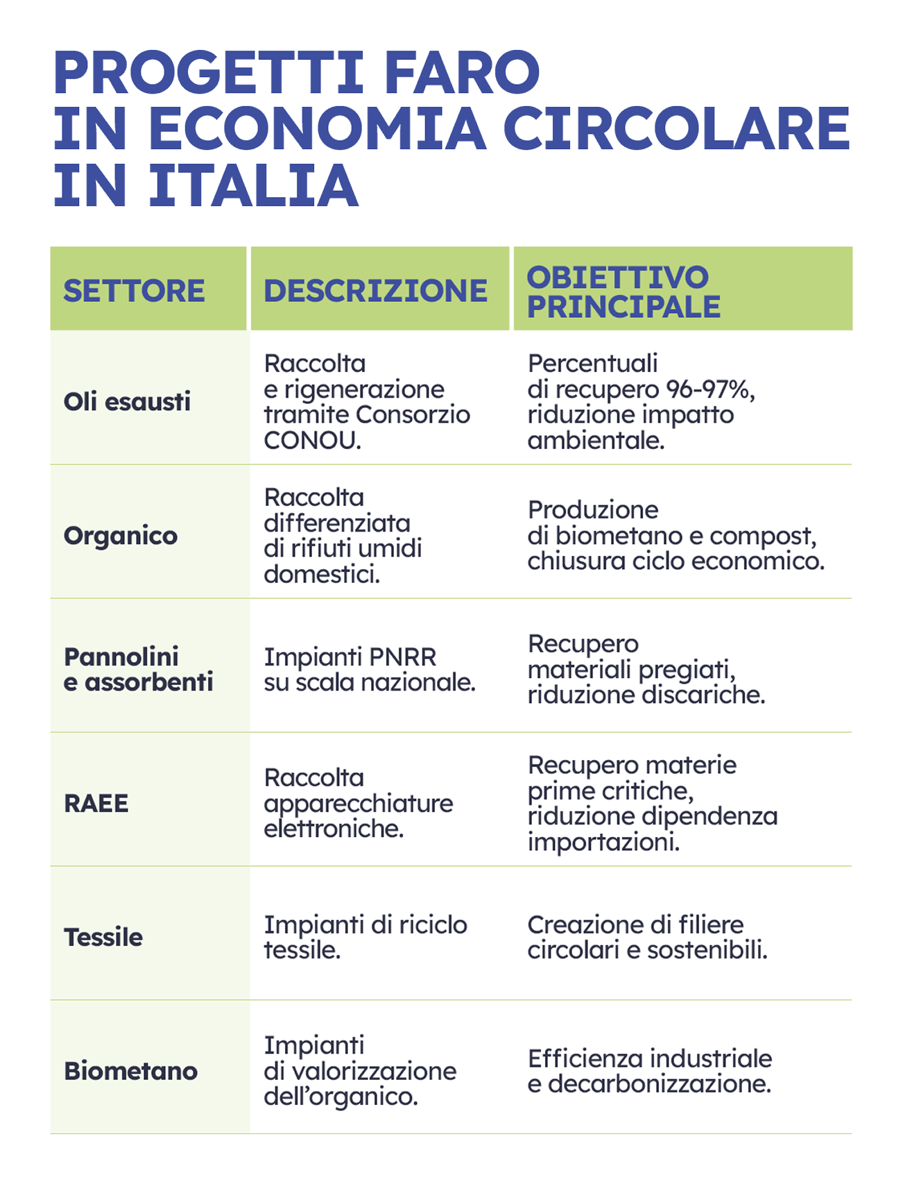 Queste filiere, insieme al biometano e agli oli esausti, rappresentano progetti “faro” a livello nazionale: impianti industriali che trasformano materiali problematici in risorse, risolvendo problemi ambientali e generando valore economico.